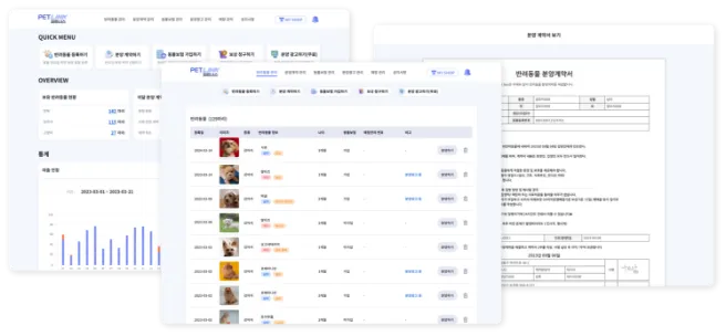 입양 단계에 꼭 필요한 One-Stop 무료 솔루션으로, 반려동물 분양 매장·유기동물 보호소 모두 사용 가능합니다.